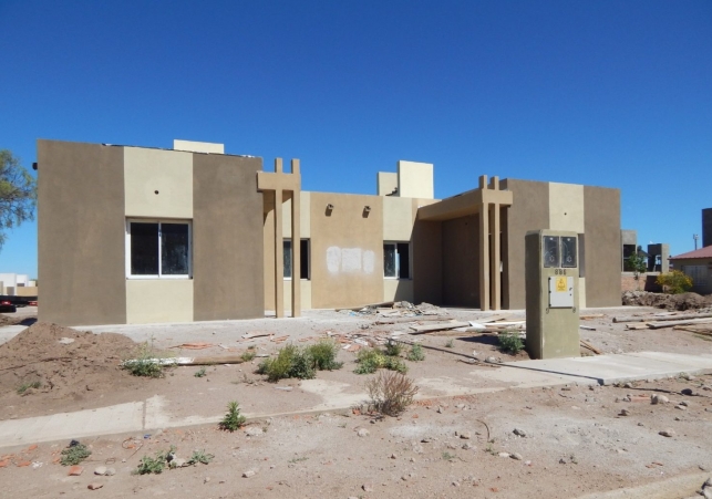 Desde la dirección de Obras de Arquitectura y Viviendas informaron que los trabajos alcanzan un 85% de avance general. En los hogares más adelantados se colocan los revestimientos texturados con color sobre los muros exteriores, mientras se avanza con la instalación de aberturas y la impermeabilización de techos. En paralelo, los equipos trabajan en las conexiones de gas, con excavaciones y colocación de cañerías.
