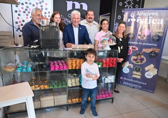 El cierre de las actividades del gobernador Claudio Poggi en Potrero de los Funes tuvo como protagonistas centrales a Valeria Bernasconi y Víctor Ramírez, los socios fundadores de ‘Mística Fábrica de Alfajores’, un emprendimiento de elaboración artesanal que mezcla sabores únicos para vecinos y turistas que transitan por el perilago del dique.