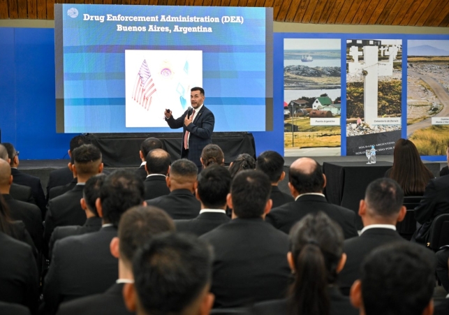 La capacitación se inscribe dentro de las acciones impulsadas por el Gobierno para reforzar las políticas públicas de seguridad y la lucha contra el narcotráfico. Del encuentro participan la ministro de Seguridad, Nancy Sosa; el analista de Inteligencia y adjunto de la DEA, Richard Candelaria; el agente especial Juan Cucci y el subcoordinador de Grupos Operativos Conjuntos, Diego Brentan.