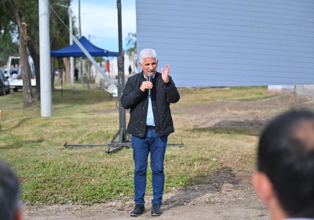 El gobernador Claudio Poggi participó de la presentación del nuevo espacio público que se desarrollará en el predio ferroviario con fondos de ‘Construyendo con tu Pueblo’. Además, la Municipalidad presentó la incorporación de una mini pala destinada a for
